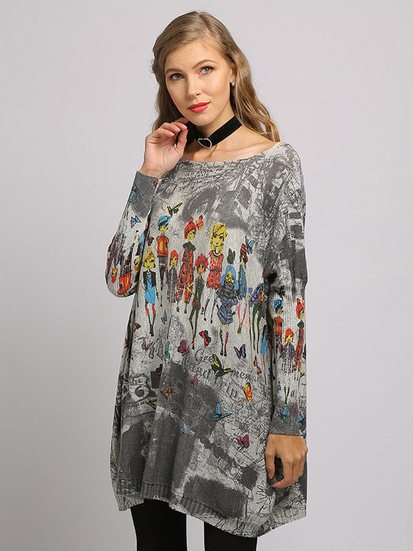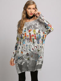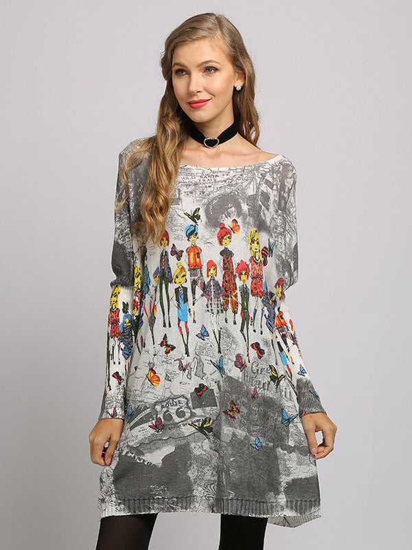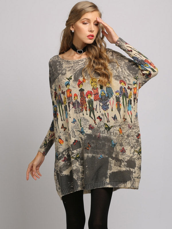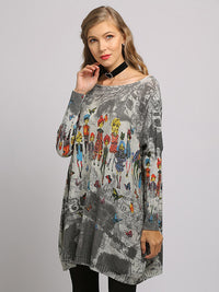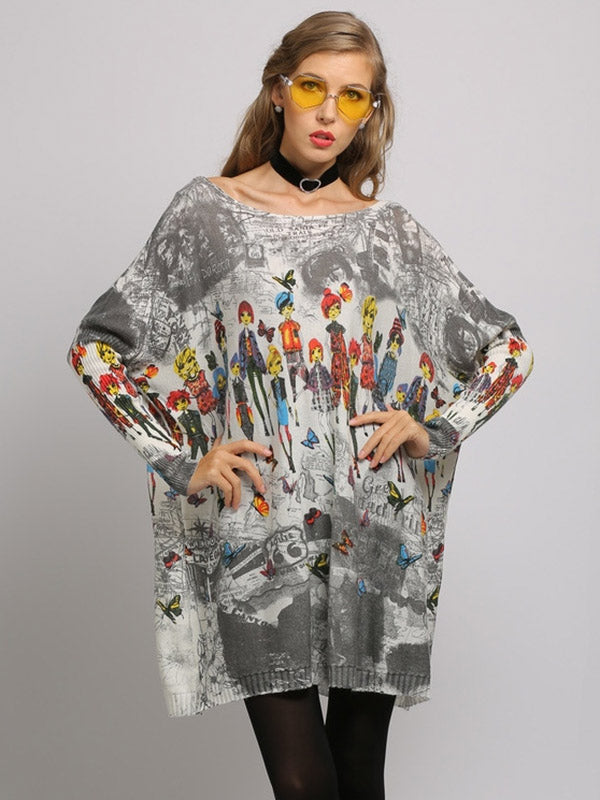 Urban Colorful Knitting Printed Long Sleeves Sweater