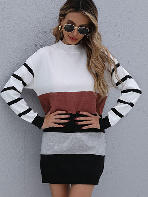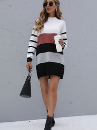Urban Contrast Color Striped Sweater Dress Mini Dress
