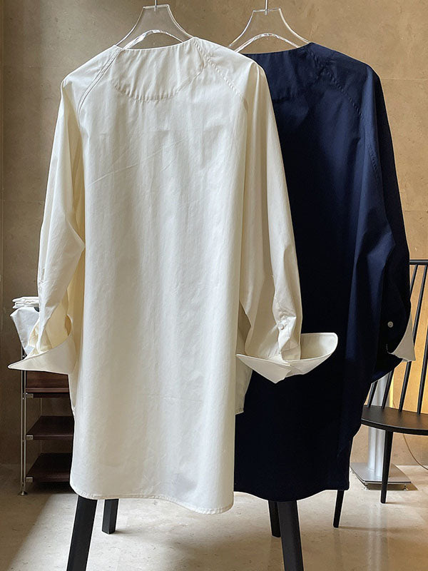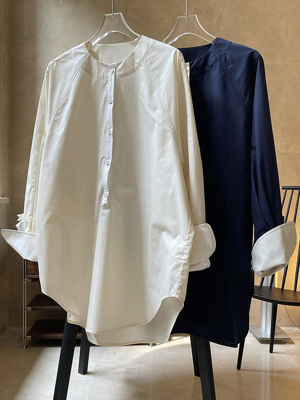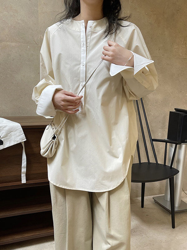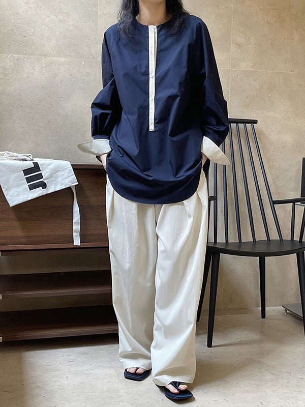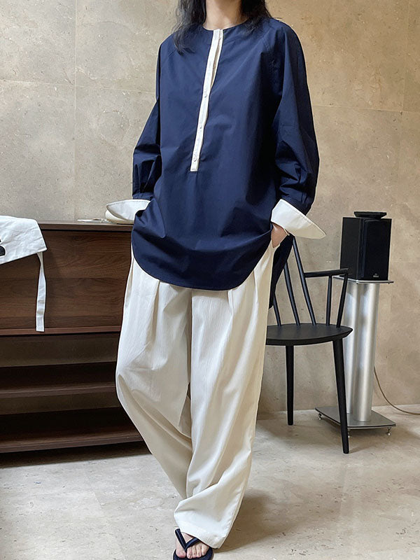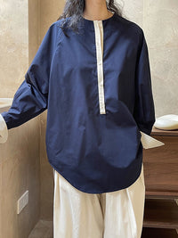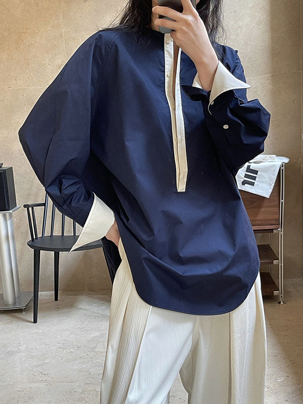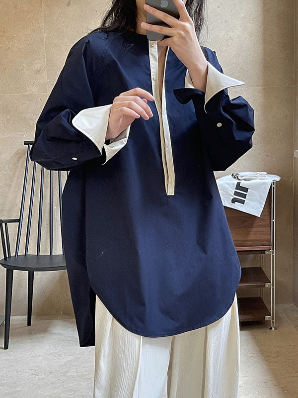 Urban Long Sleeves Loose Contrast Color Round-Neck Blouses&Shirts Tops