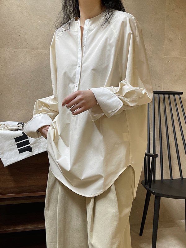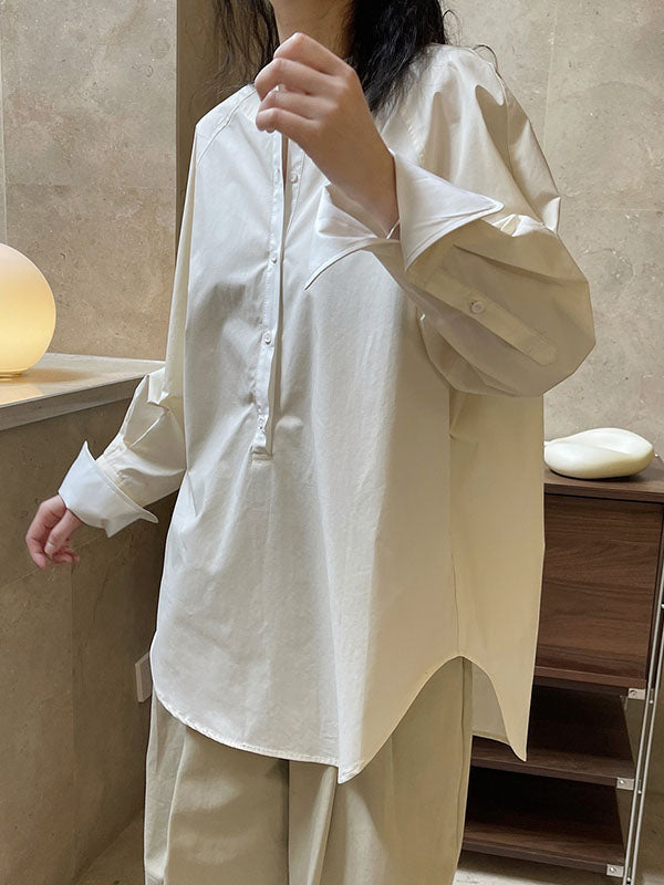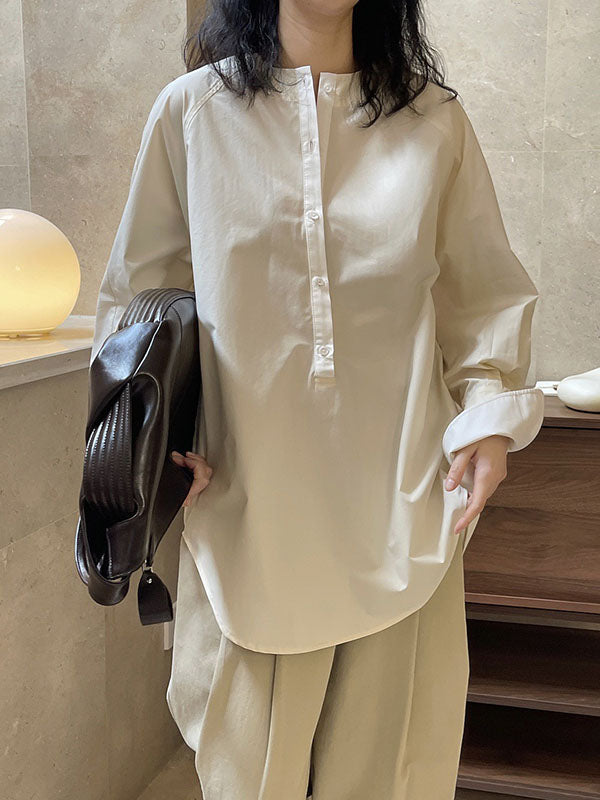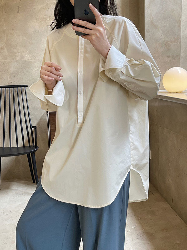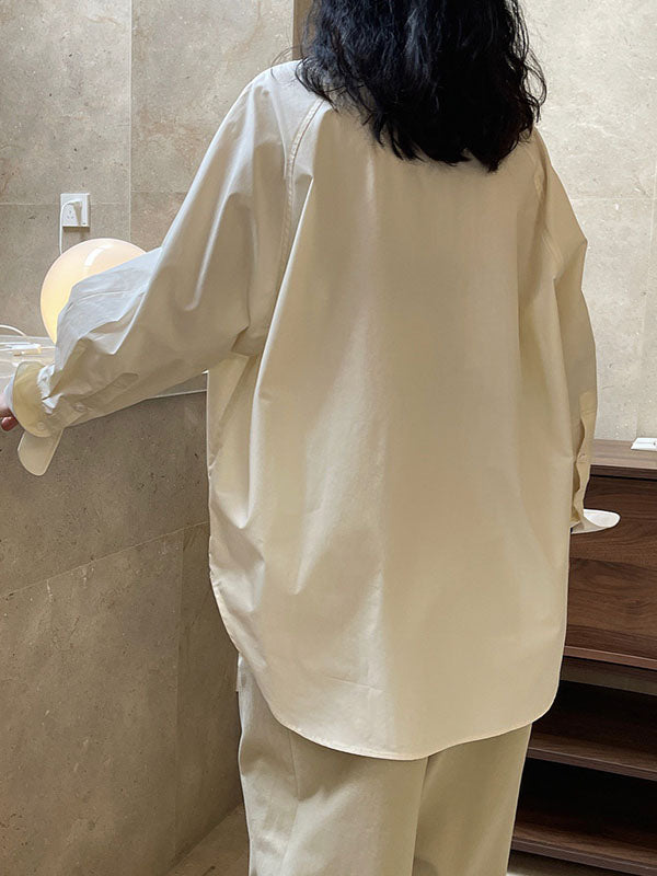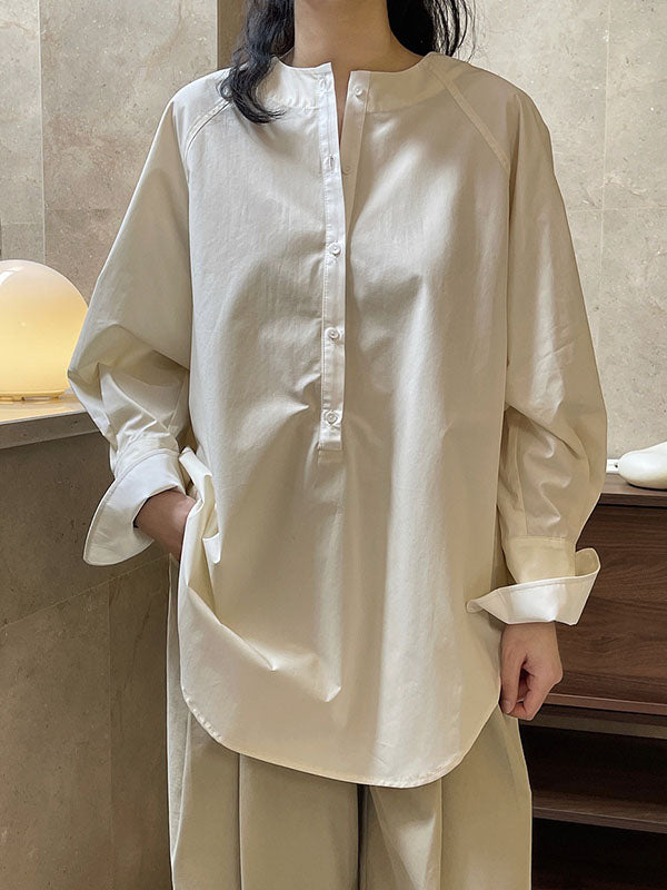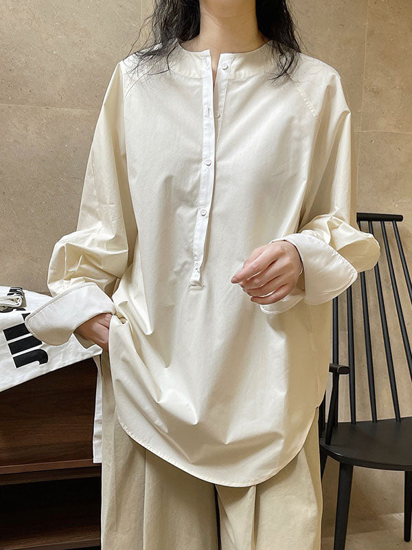 Urban Long Sleeves Loose Contrast Color Round-Neck Blouses&Shirts Tops