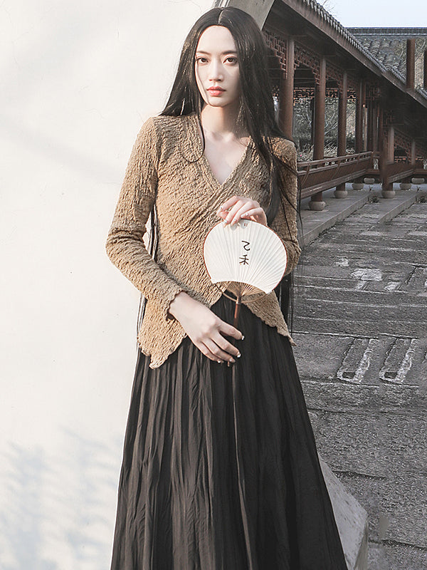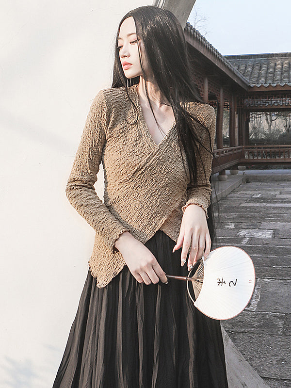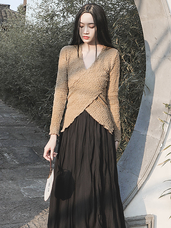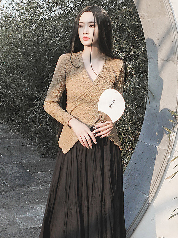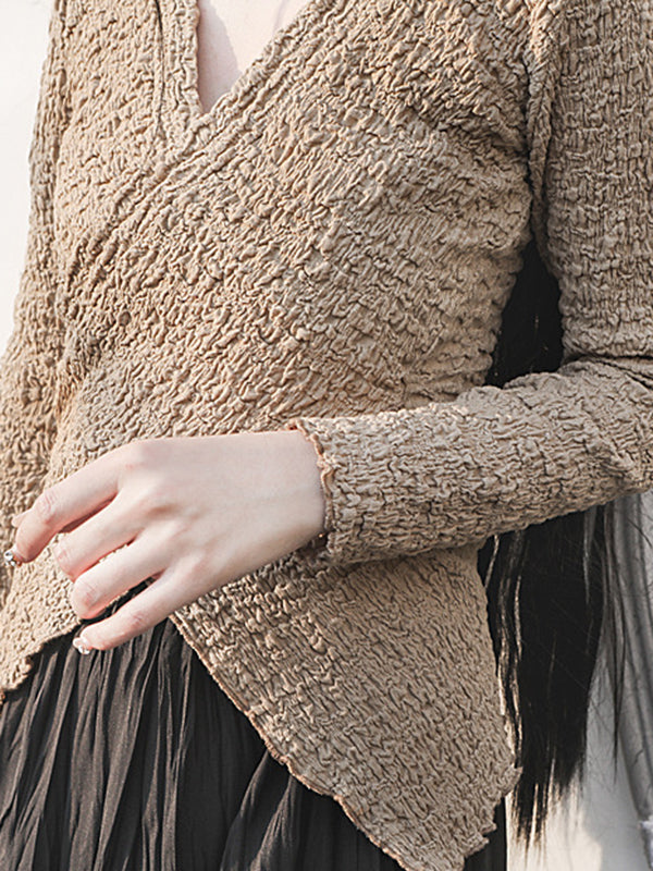 Urban Long Sleeves Skinny Solid Color V-Neck T-Shirts Tops