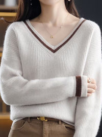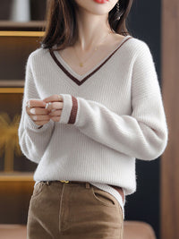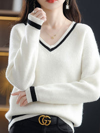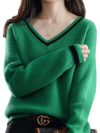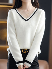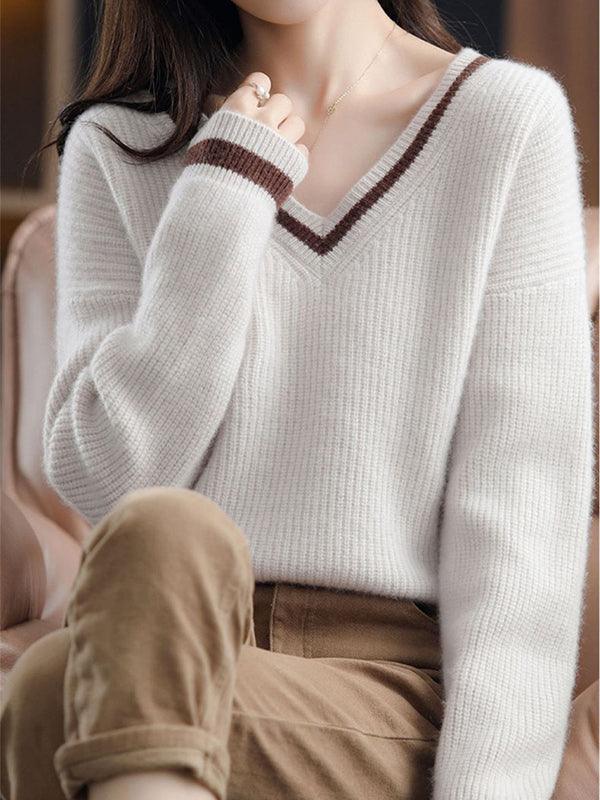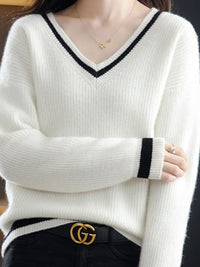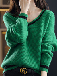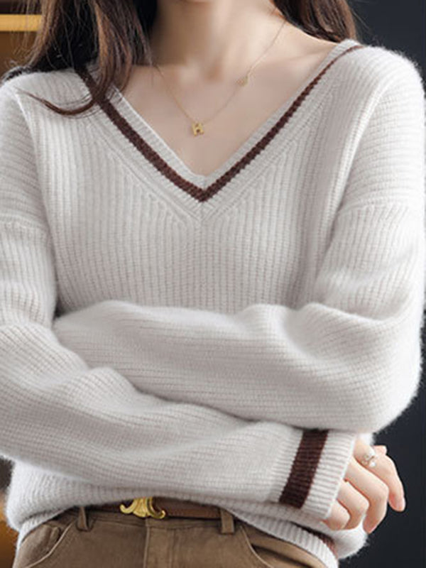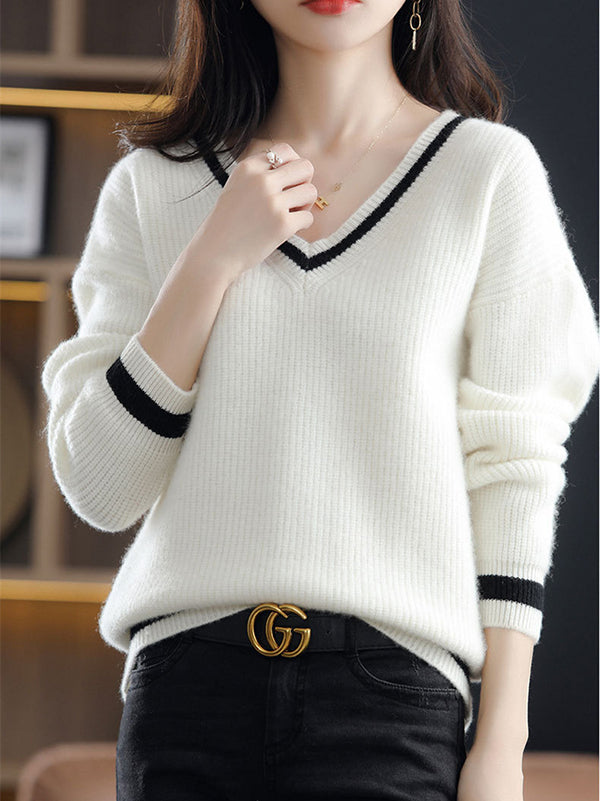 Urban Loose Long Sleeves Contrast Color V-Neck Sweater Tops