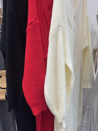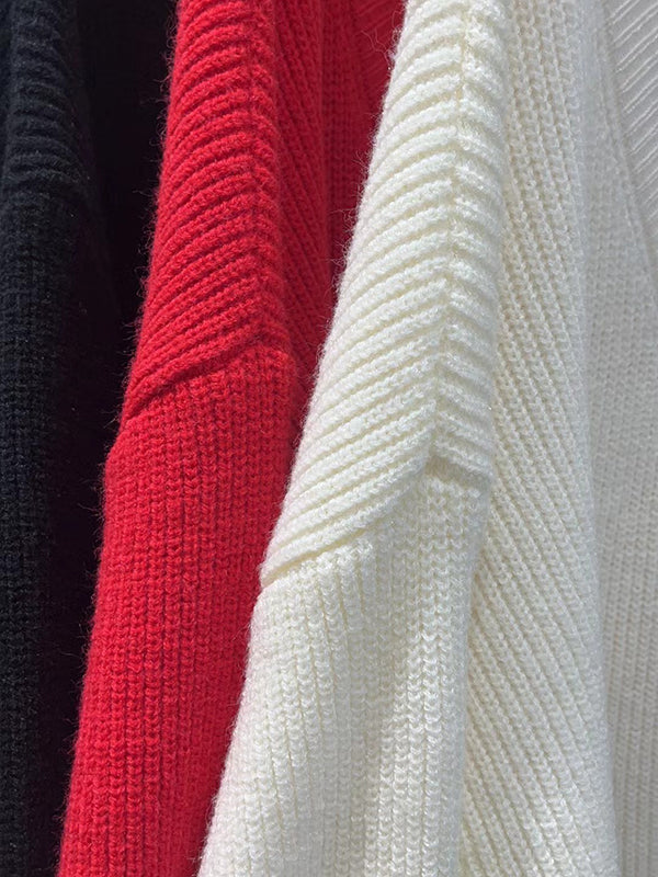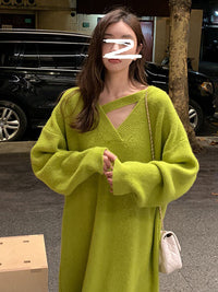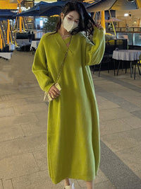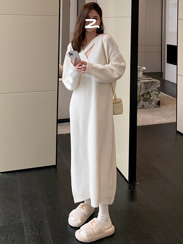 Urban Loose Long Sleeves Solid Color V-Neck Sweater Dresses