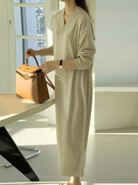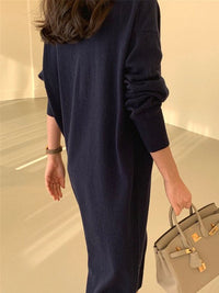 Urban Loose Long Sleeves Solid Color V-Neck Sweater Dresses