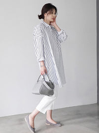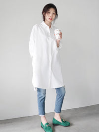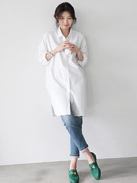 Urban Loose Solid Color Striped Lapel Blouse Top