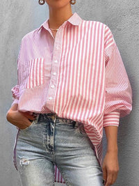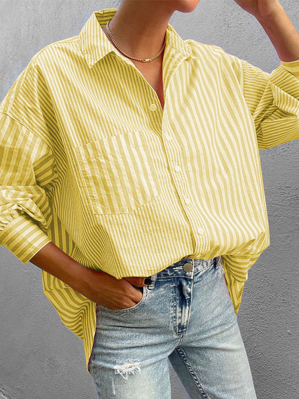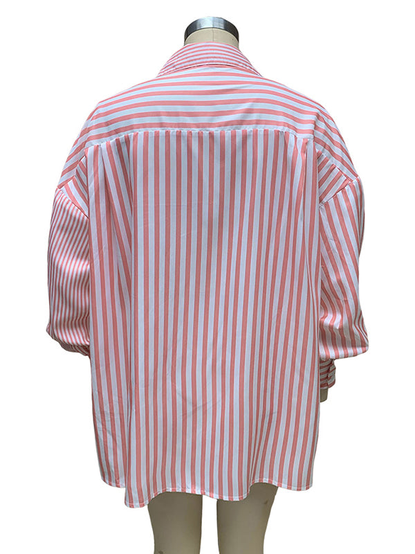 Urban Loose Striped Lapel Collar Blouses&Shirts Tops
