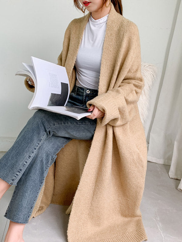 Urban Simple Loose Solid Color Knitting Cardigan Coat