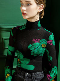 Urban Skinny Lace Printed Half Turtleneck T-Shirts Tops