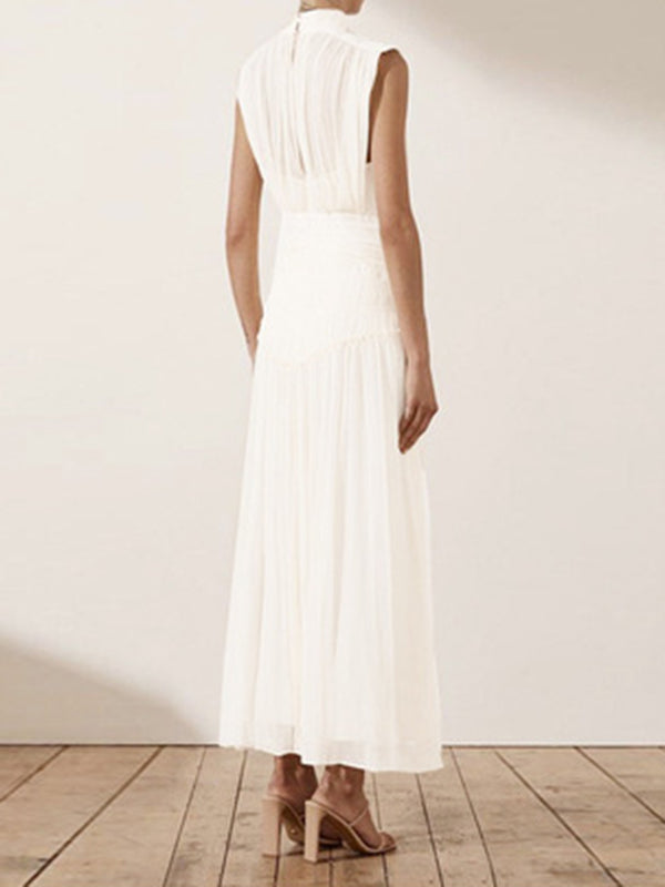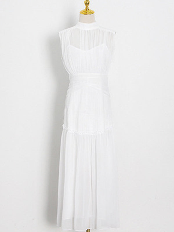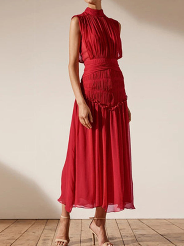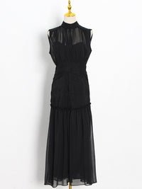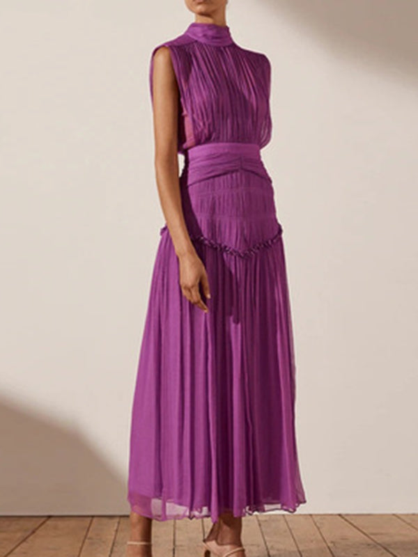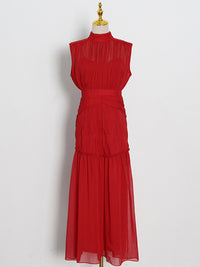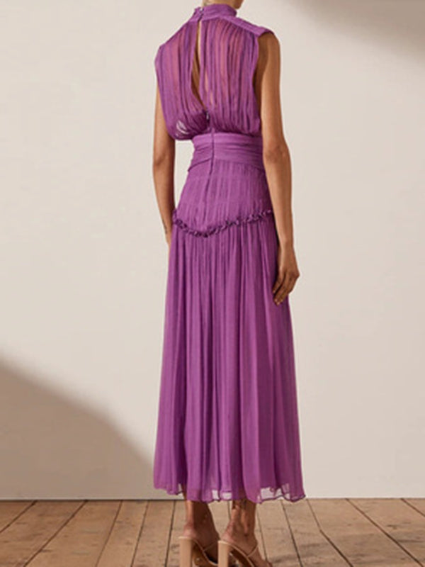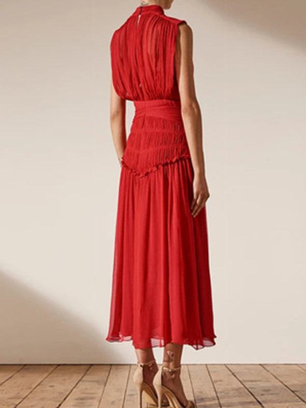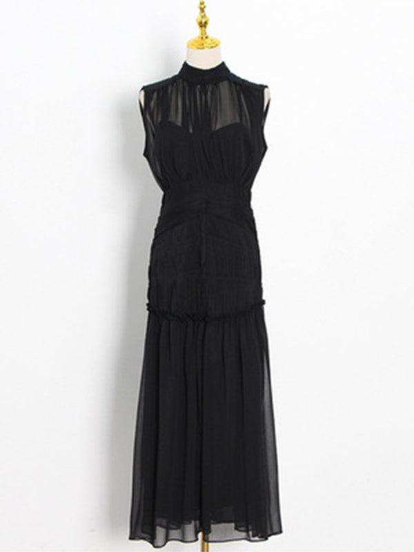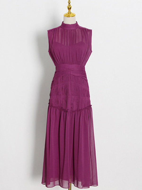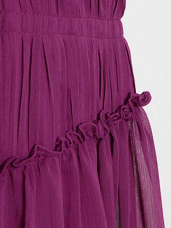 Urban Solid Color High Waisted Falbala Maxi Dress