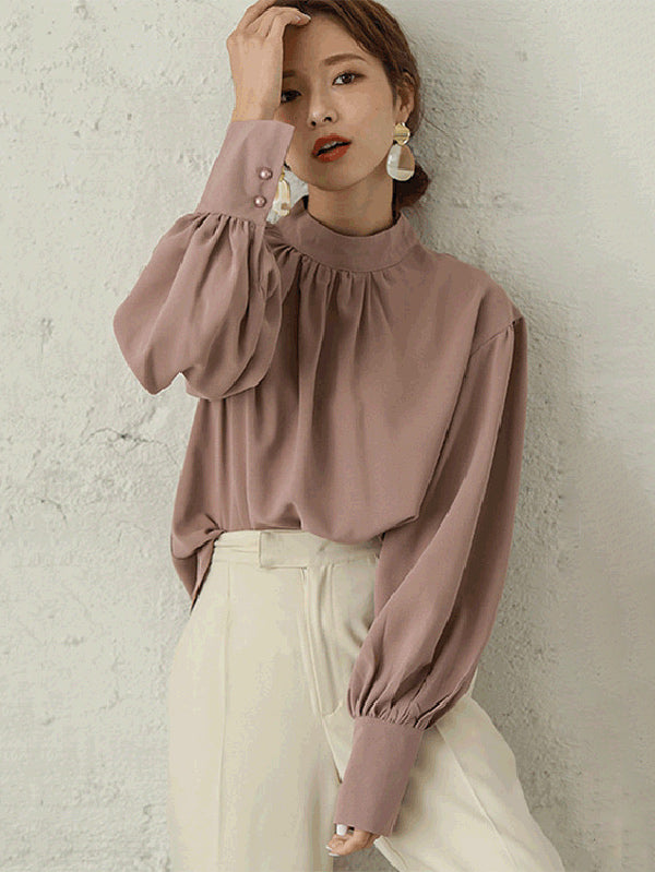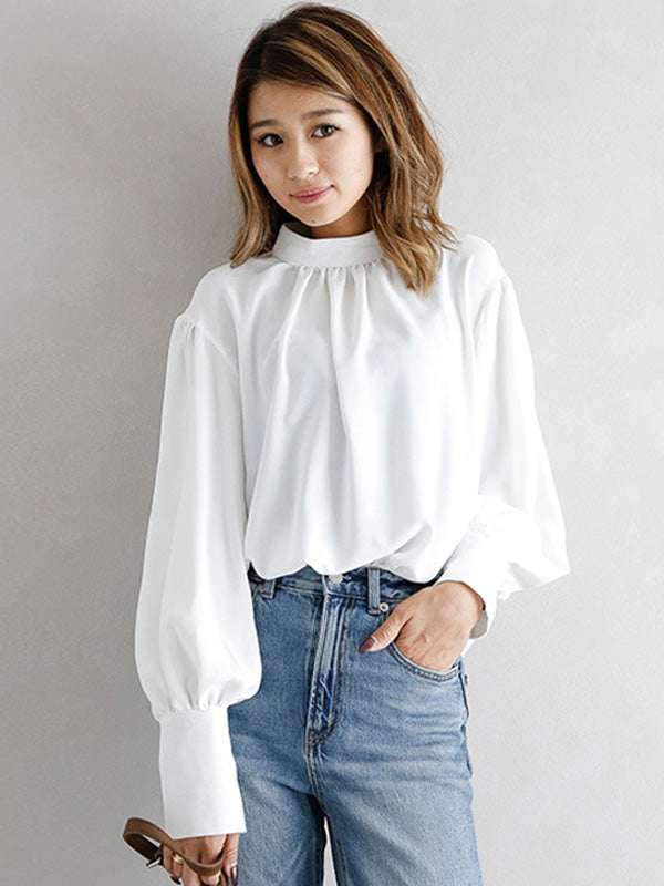 Urban Solid Color Light Maturity Puff Sleeve Shirt