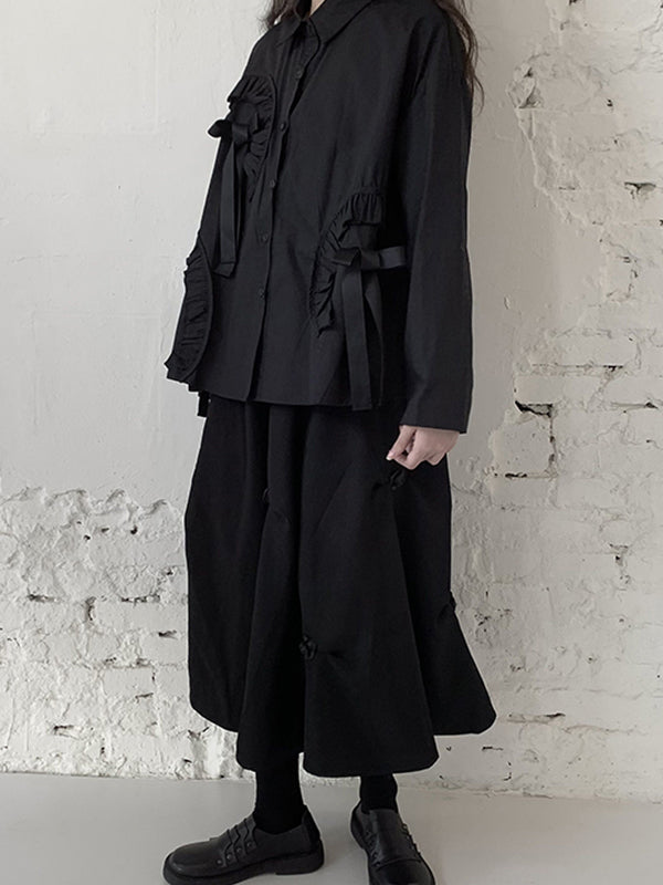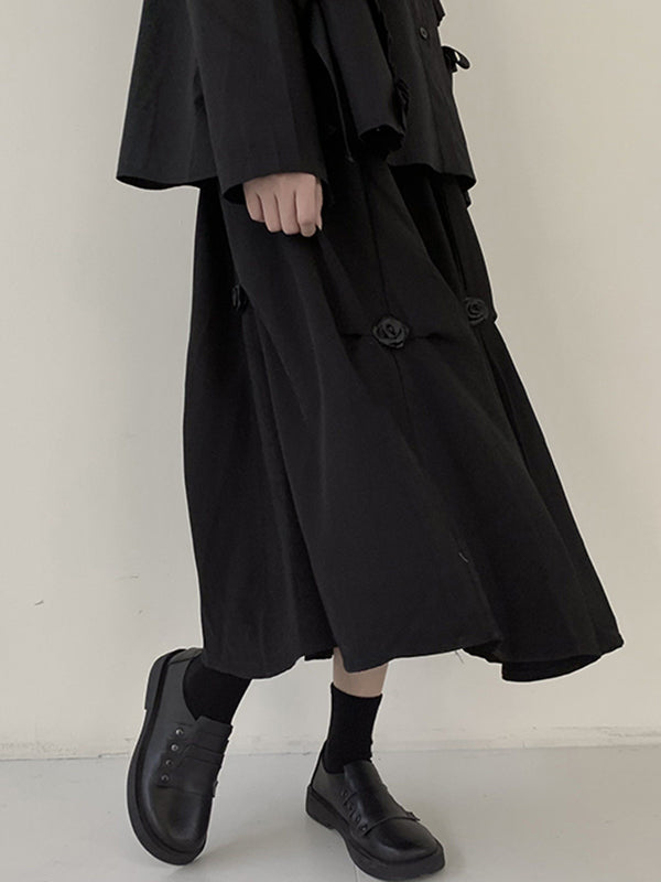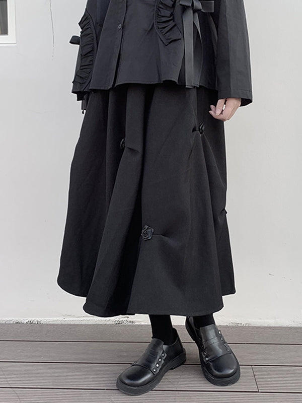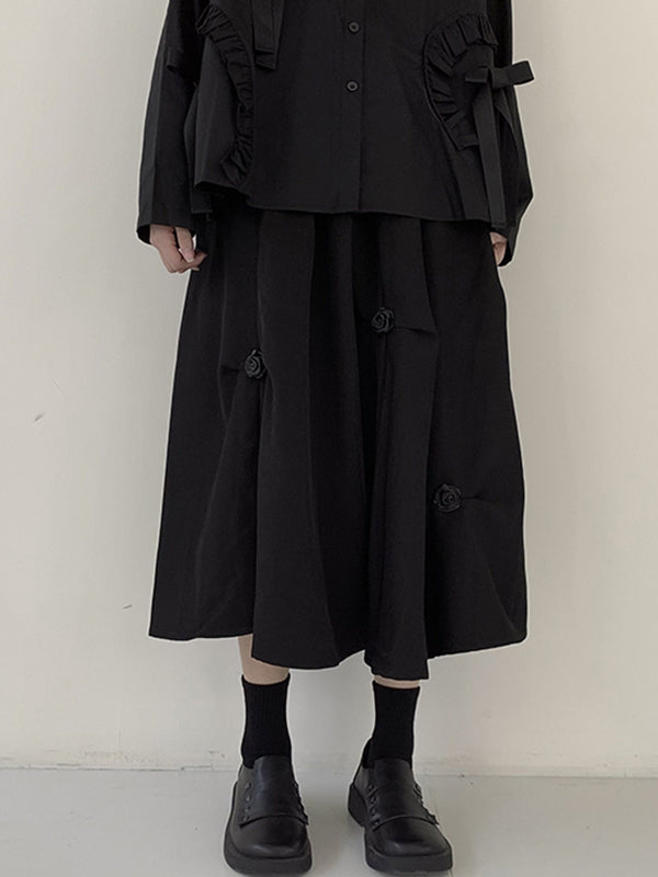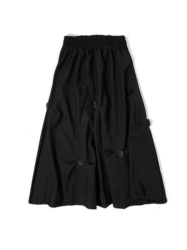 Urban Vintage Loose High Waisted Floral Applique Black Skirt