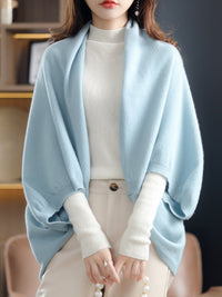 Urban Wool Loose Solid Color Batwing Sleeves Cape Cardigan Tops