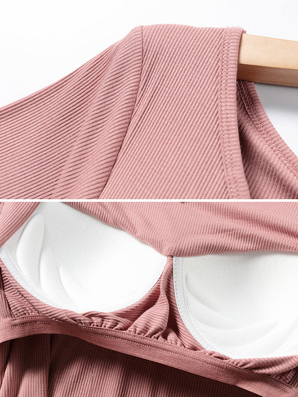 V-Neck Solid Color Long Sleeve&Pants Pajamas Sets