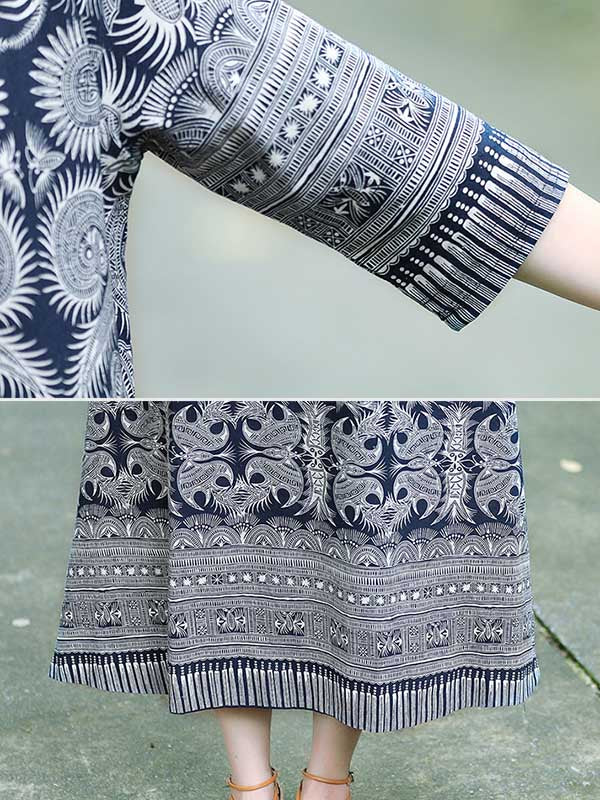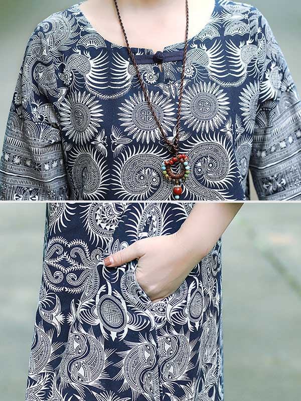 Vintage Cotton Blend Printing Midi Dresses