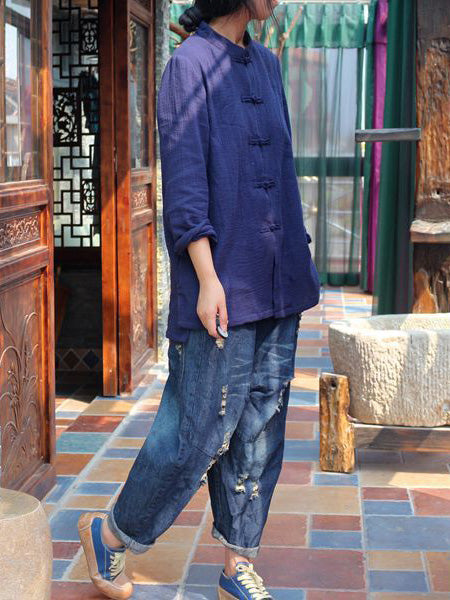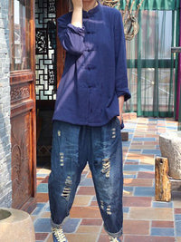 Vintage Elasticity Hollow 3/4 Jean Pants
