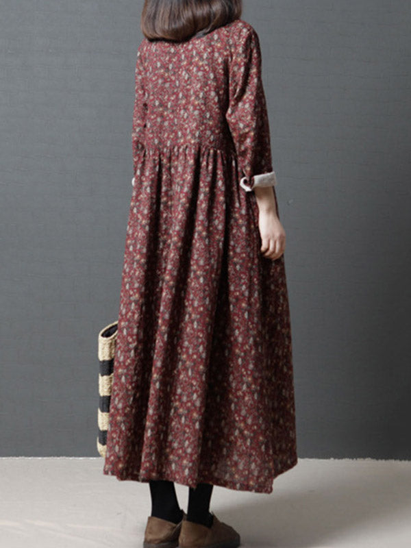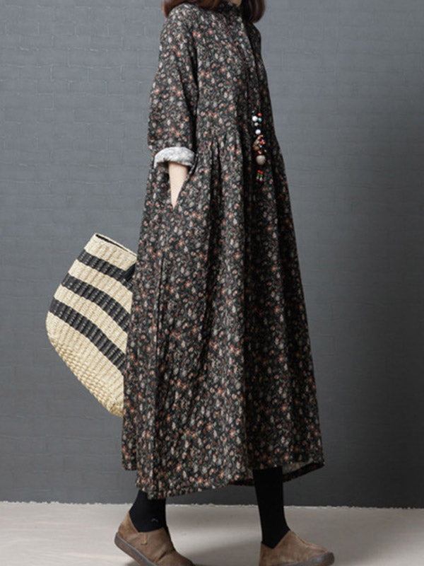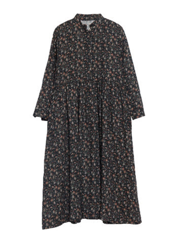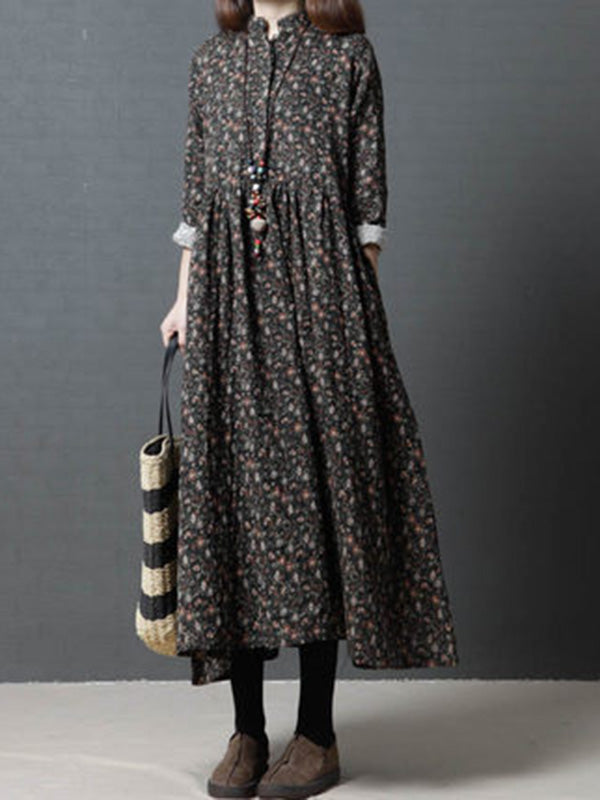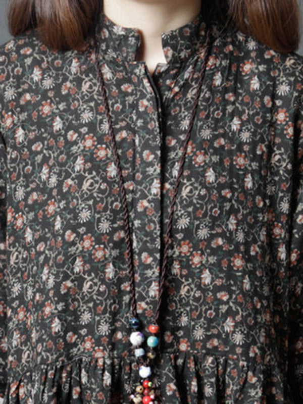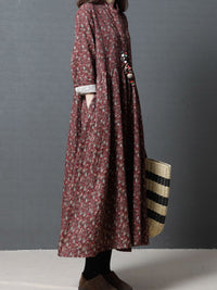 Vintage Floral Stand Collar Midi Dress