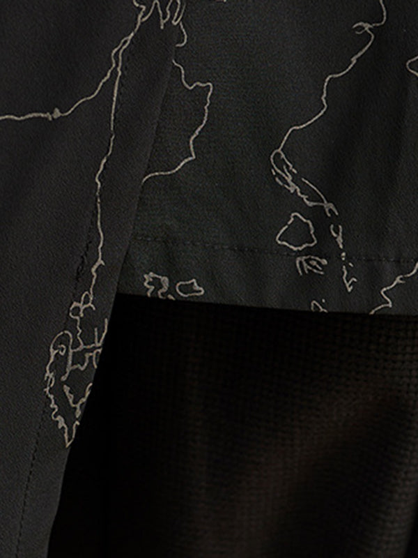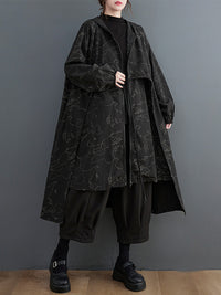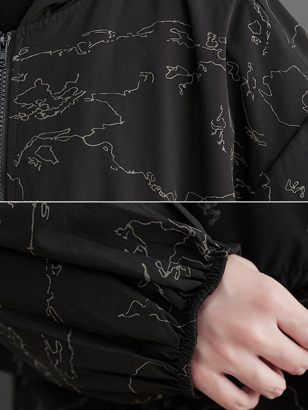 Vintage Irregularity Loose Drawstring Printed Zipper Hooded Trench Coats