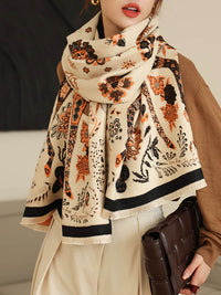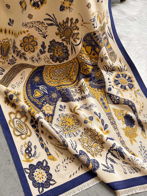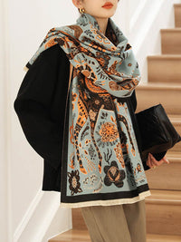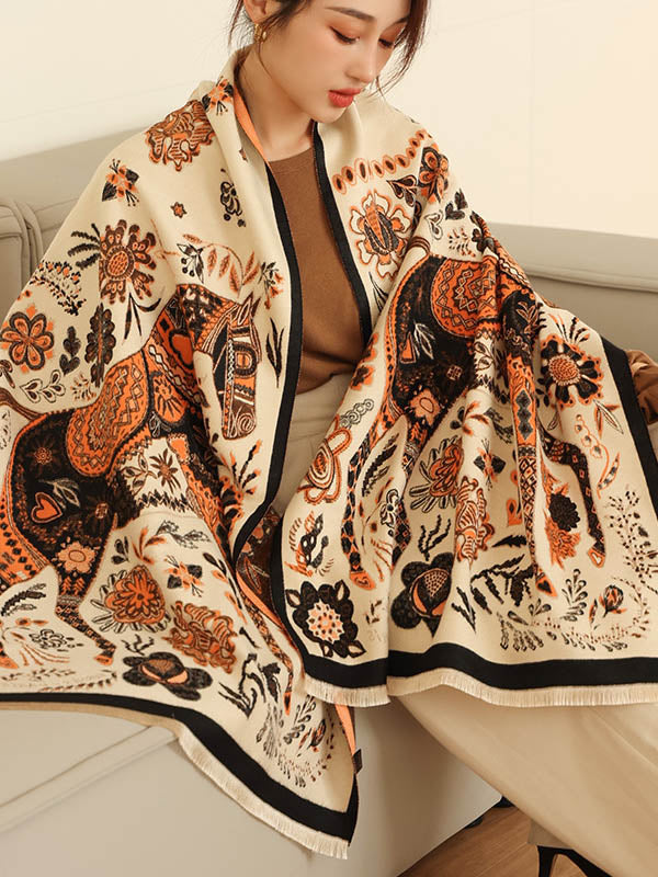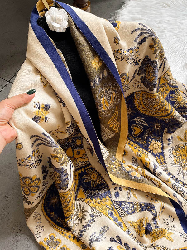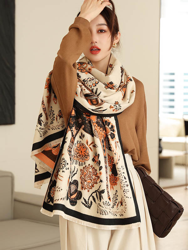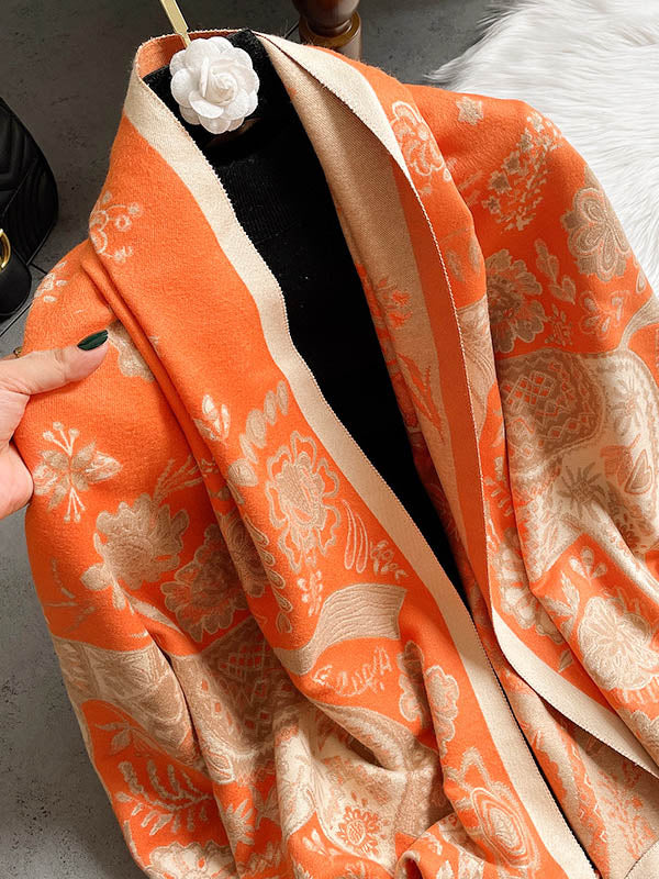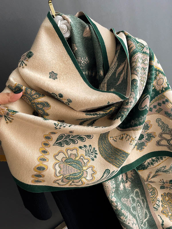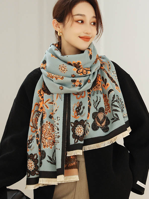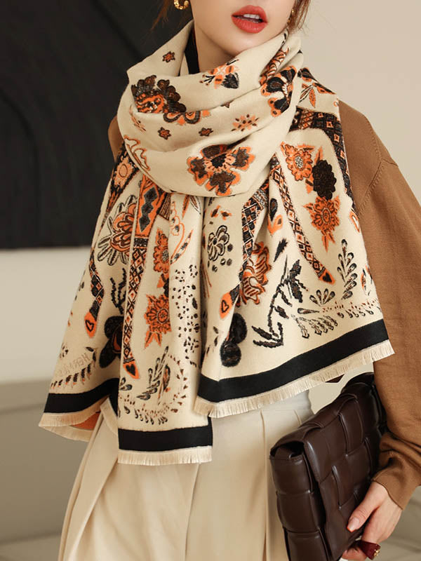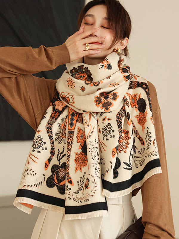 Vintage Knitting Tasseled Jacquard Imitated Cashmere Scarf Shawl
