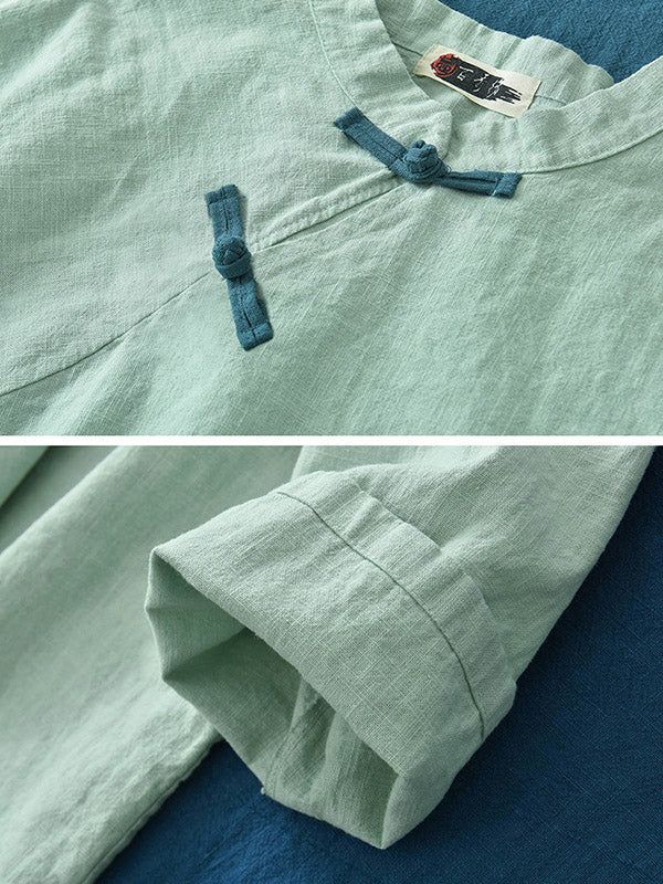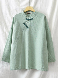 Vintage Linen Frog Loose Long Sleeve Shirt Tops