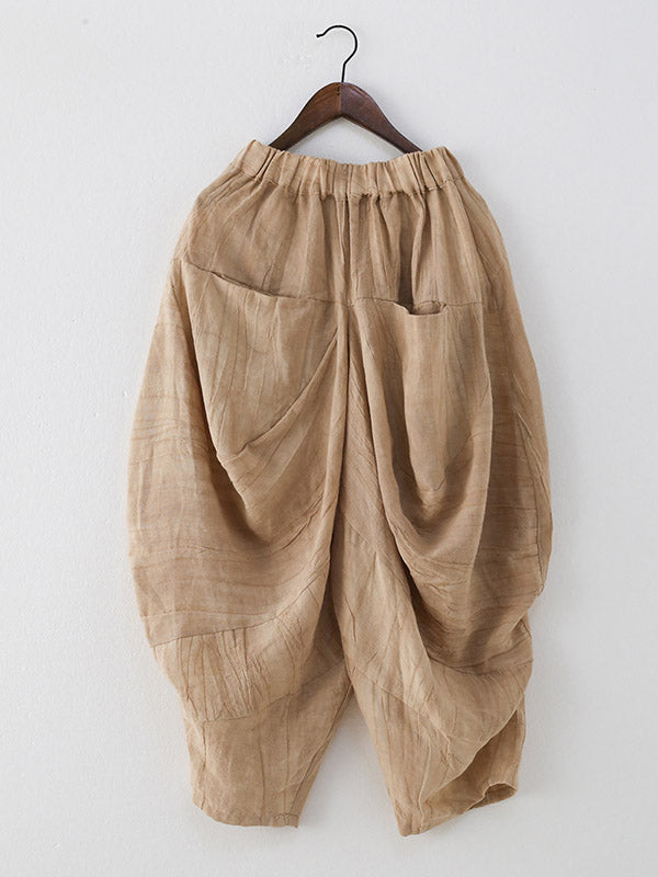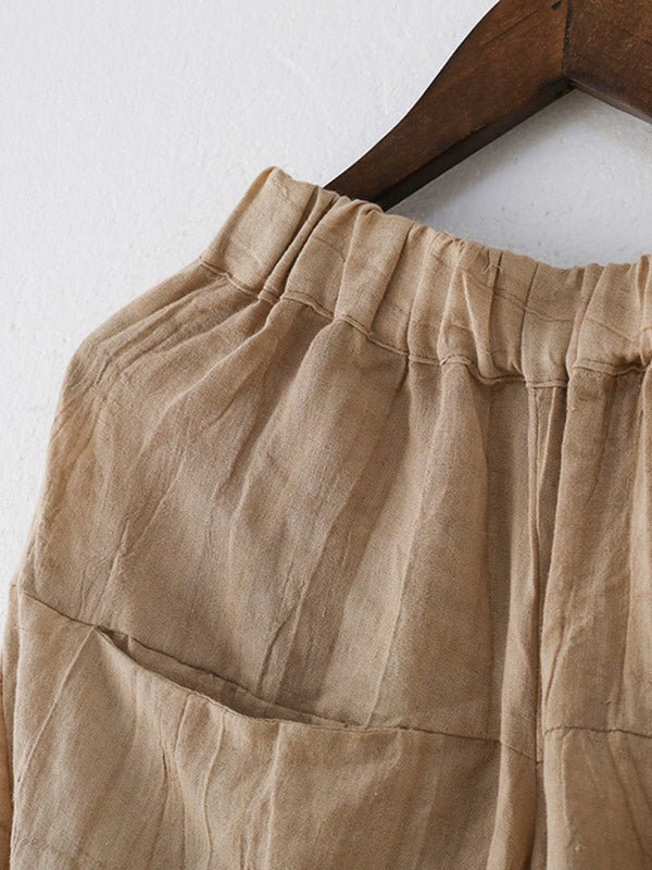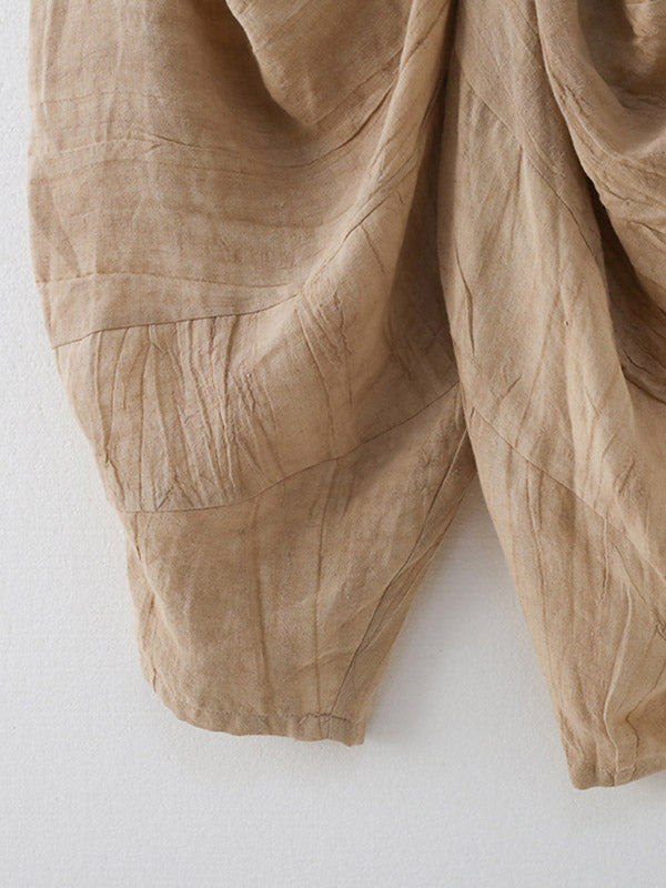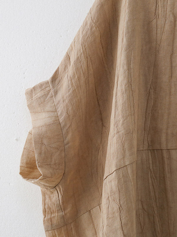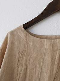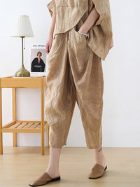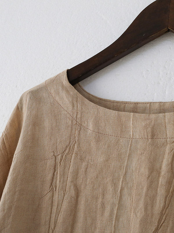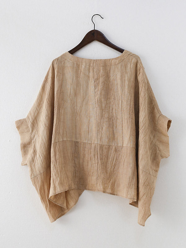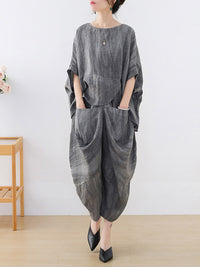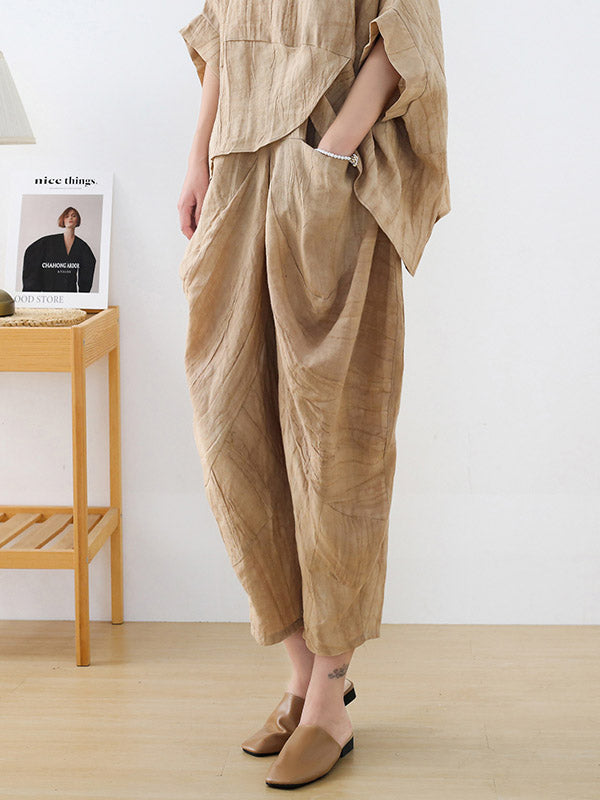 Vintage Linen Loose Split-Joint Round-Neck Batwing Sleeves T-Shirt+Elasticity Wide Leg Pants 2 Pieces Set