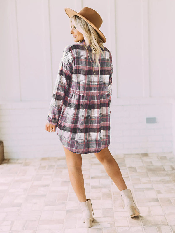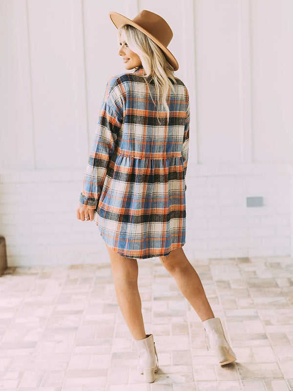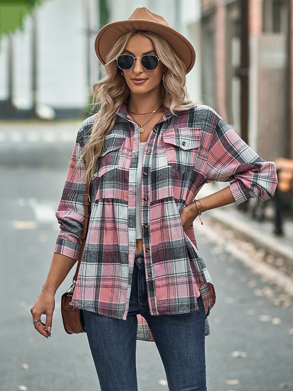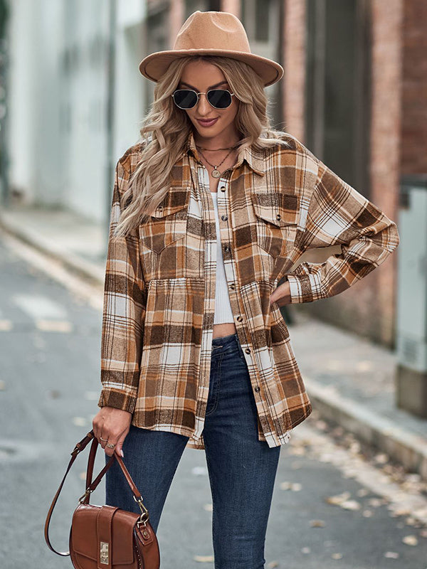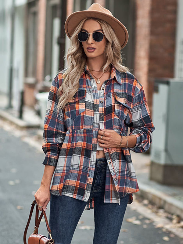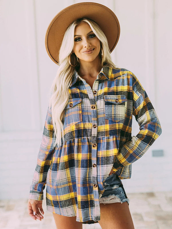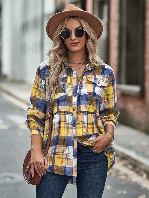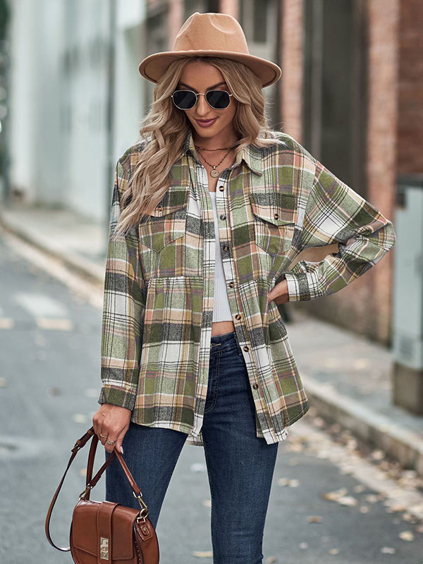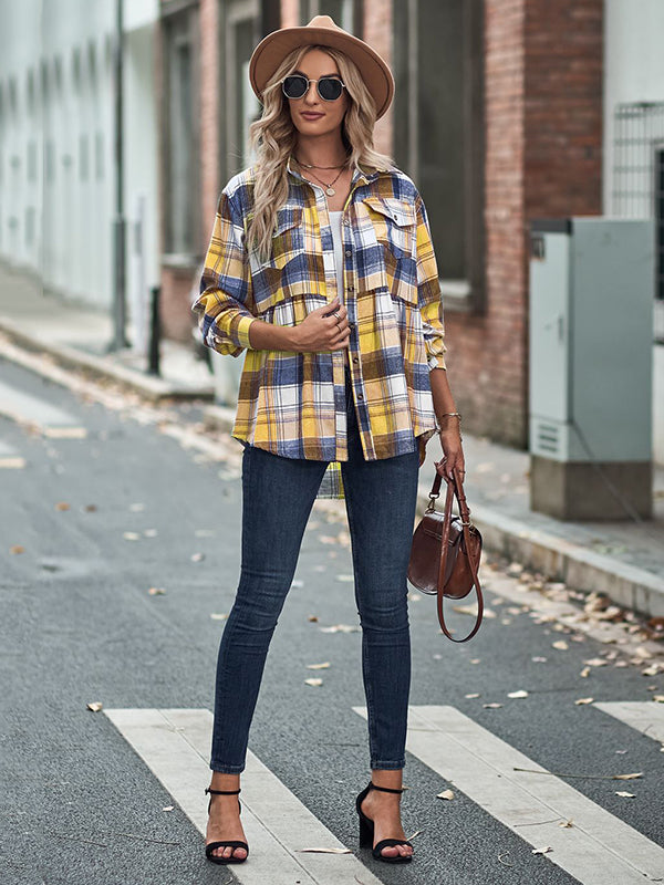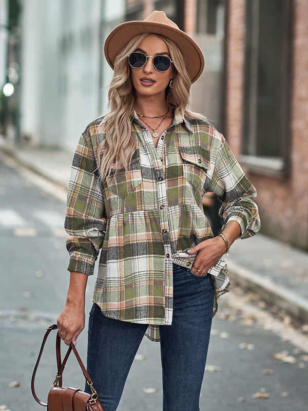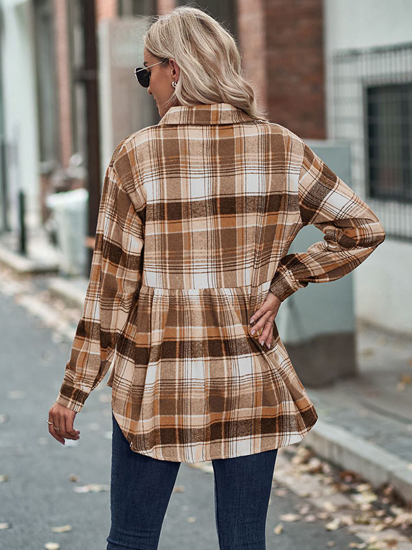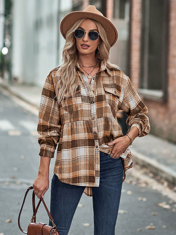 Vintage Loose Checkered Lapel Blouses&Shirts Tops