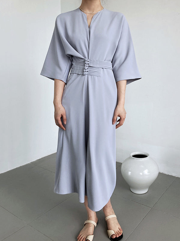 Vintage Loose Half Sleeves Buttoned H-Line Midi Dress