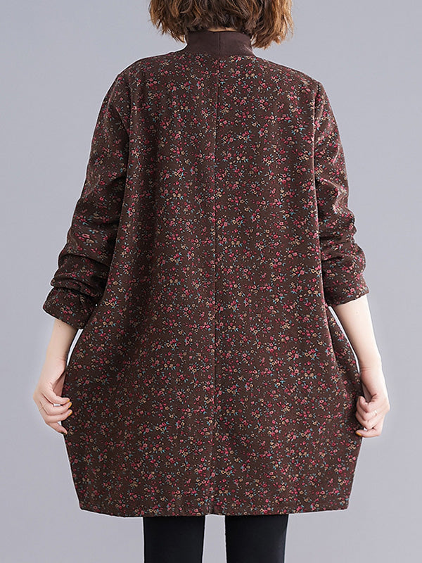 Vintage Loose Long Sleeves Floral Printed High-Neck Mini Dresses