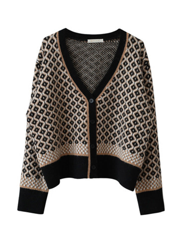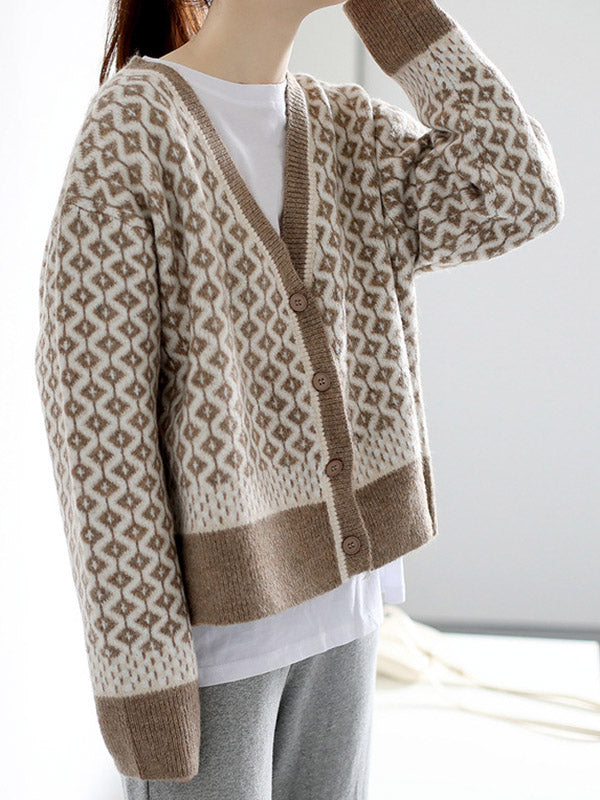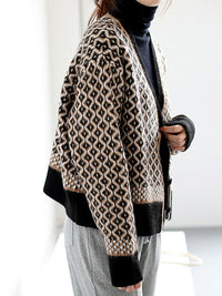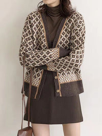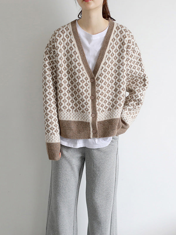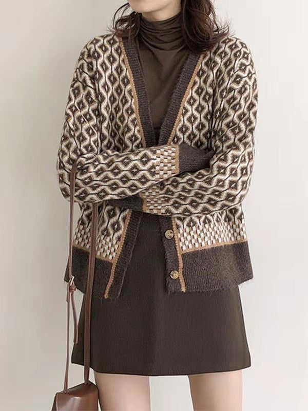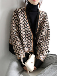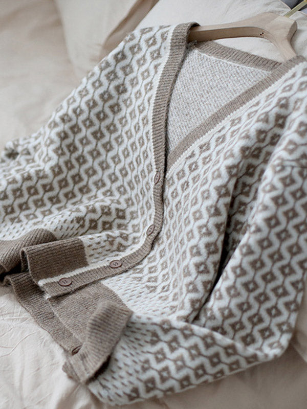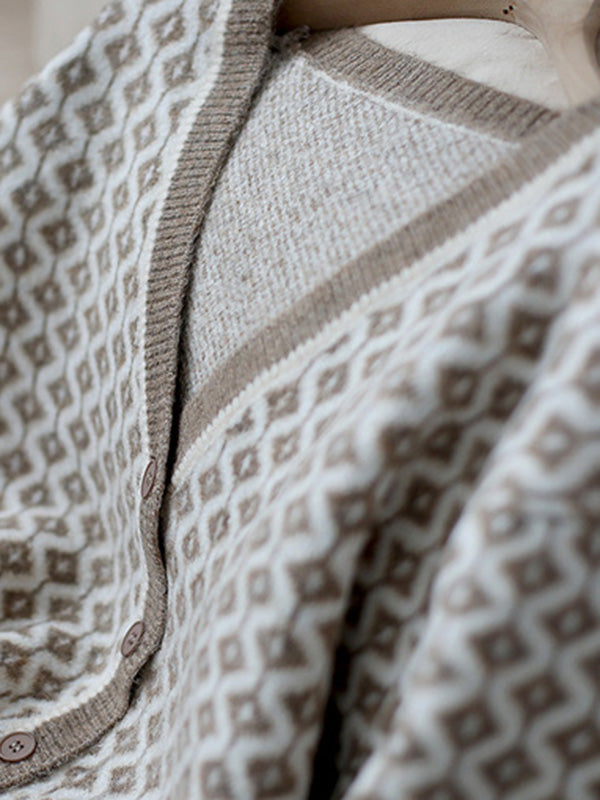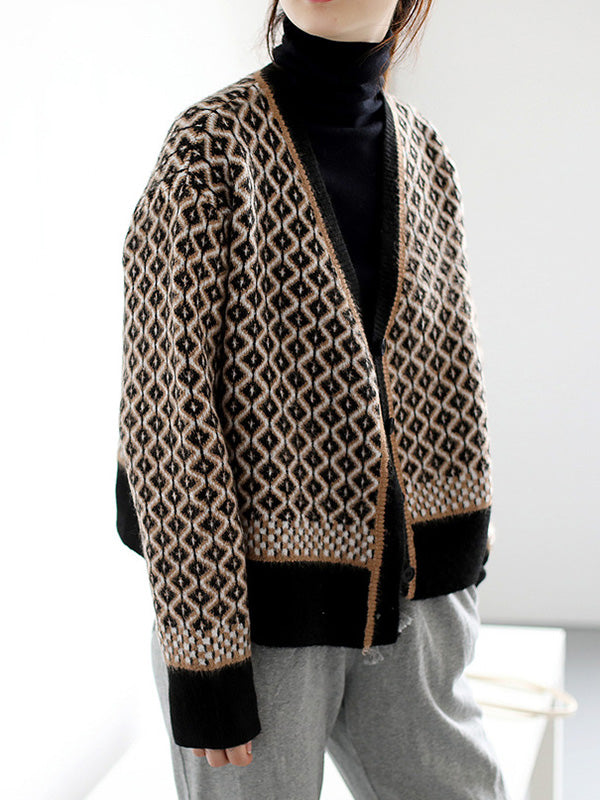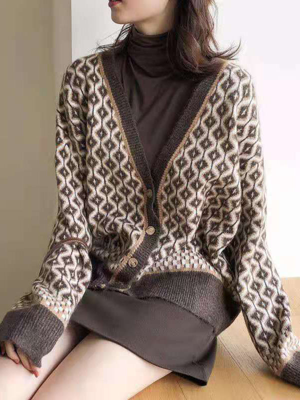 Vintage Loose Rhombic V-Neck Cardigan
