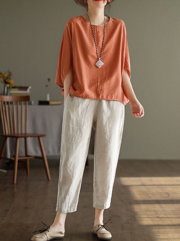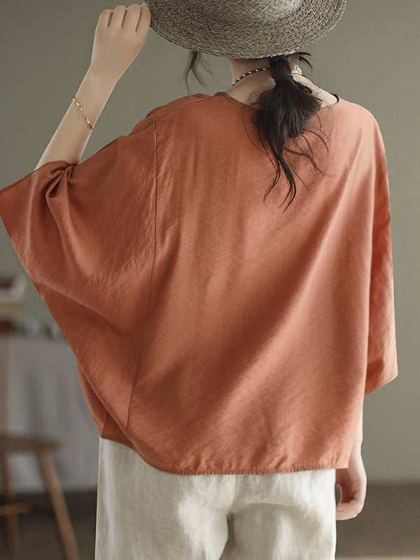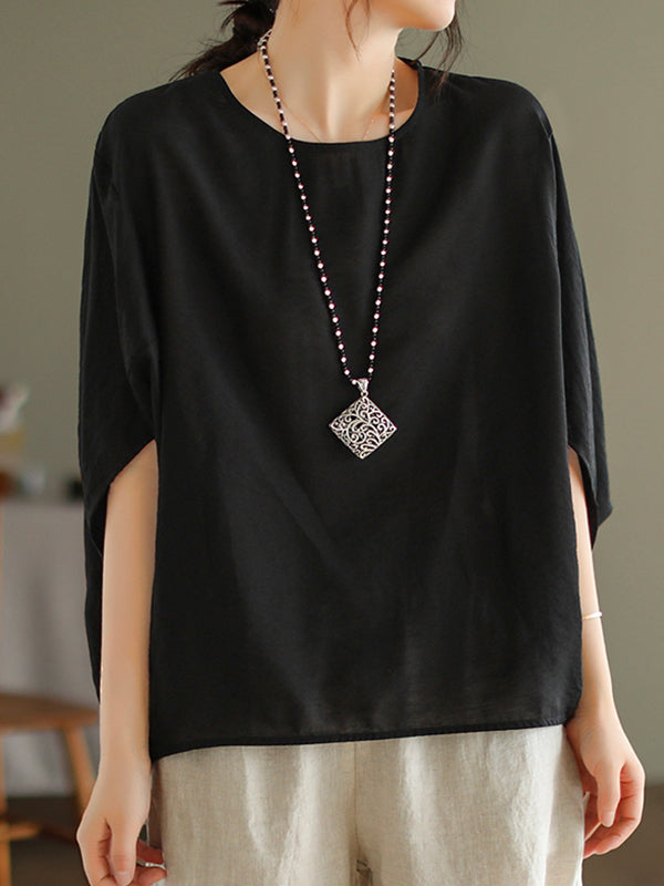 Vintage Loose Round-Neck Batwing Sleeves T-Shirt