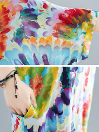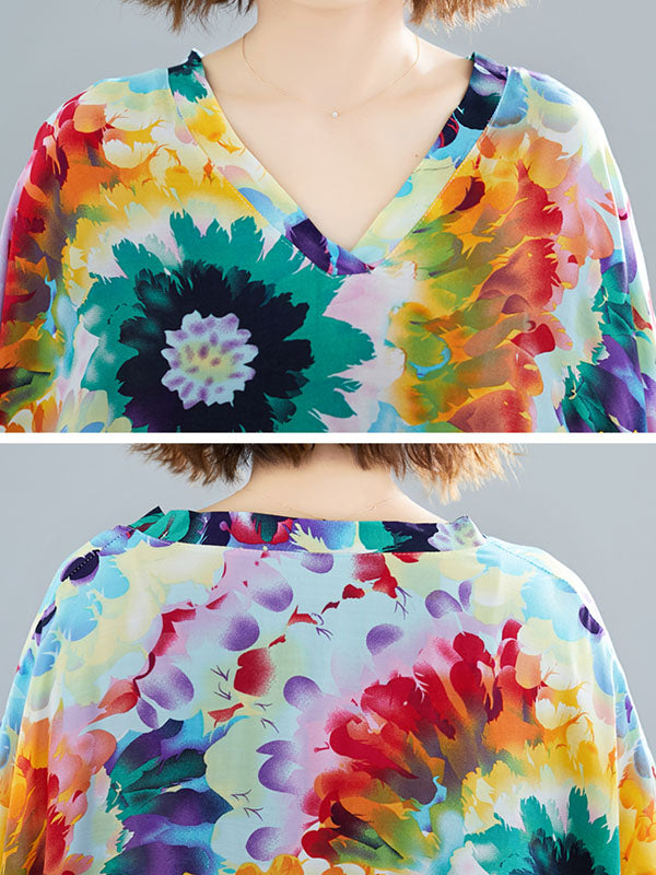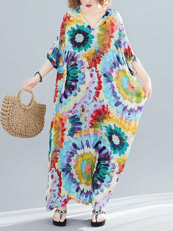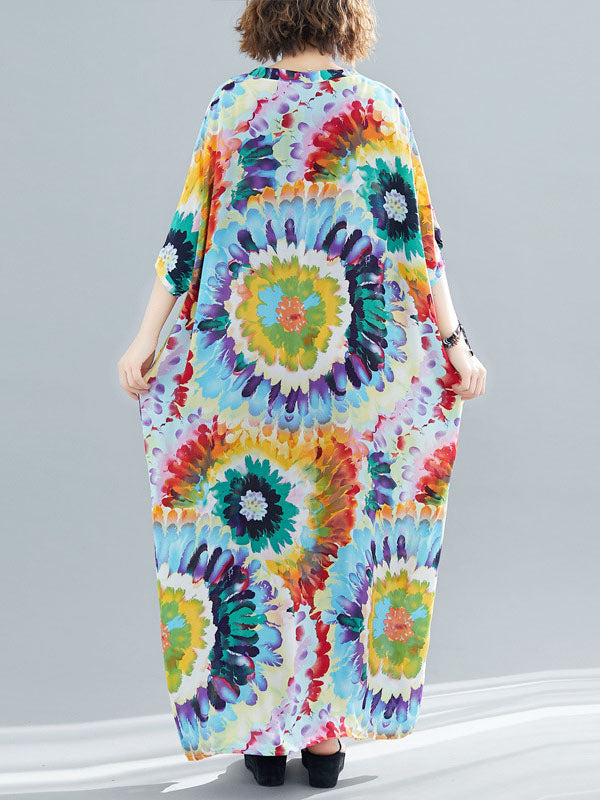 Vintage Loose Tie-Dyed Batwing Sleeves V-Neck Maxi Dress