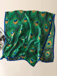 Vintage Peacock Printed Silk Imitation Shawl&Scarf