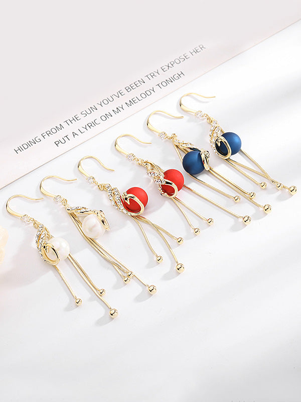 Vintage Pearl&Peacock Pattern Splicing Tassel Earrings