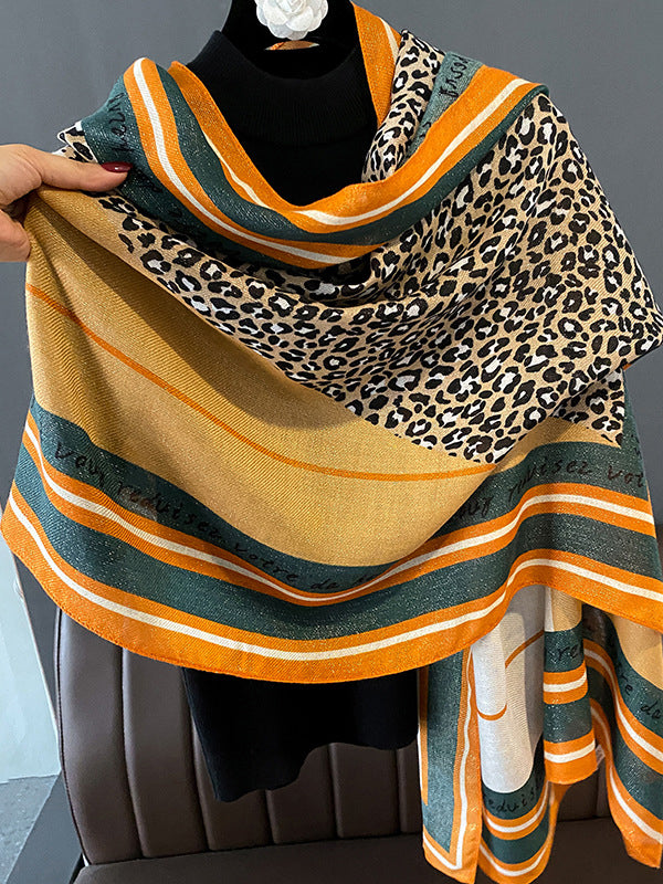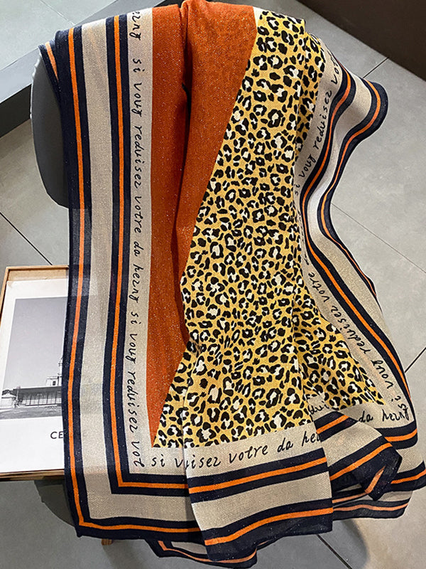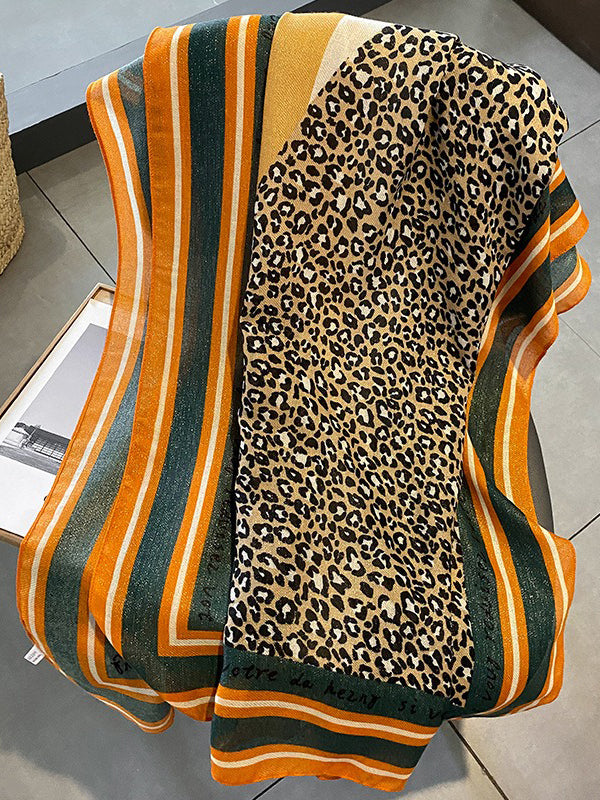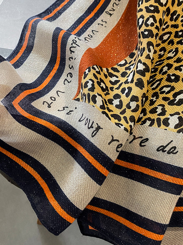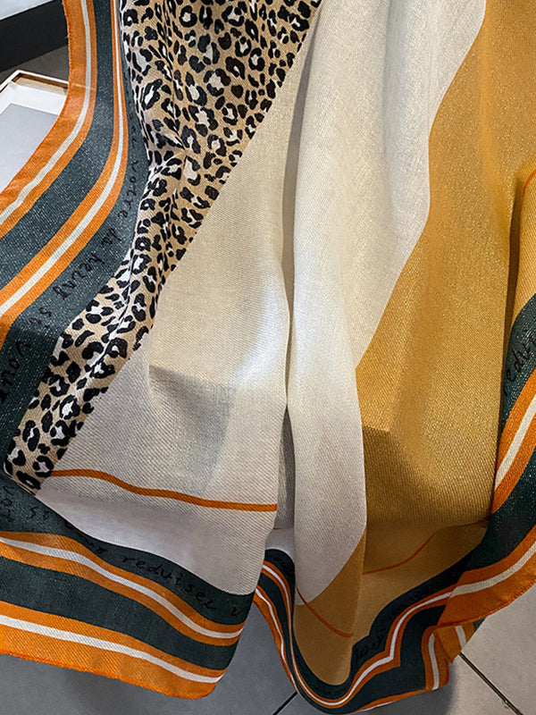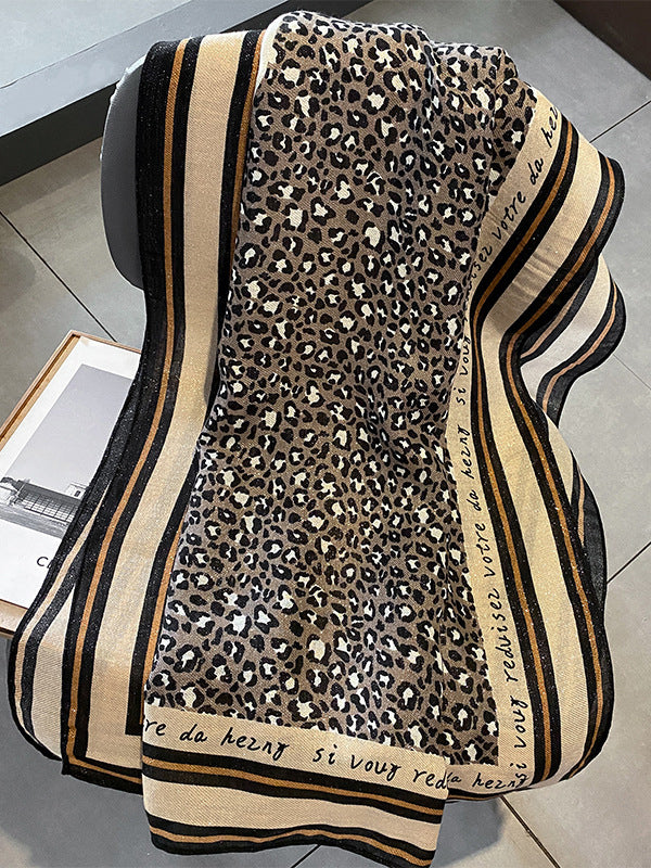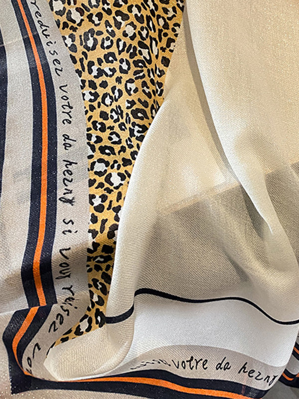 Vintage Ramie Cotton Leopard Printed Scarf
