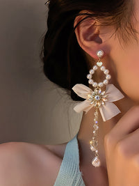 Vintage Rhinestone Bow-Embellished Tasseled Earrings Accessories