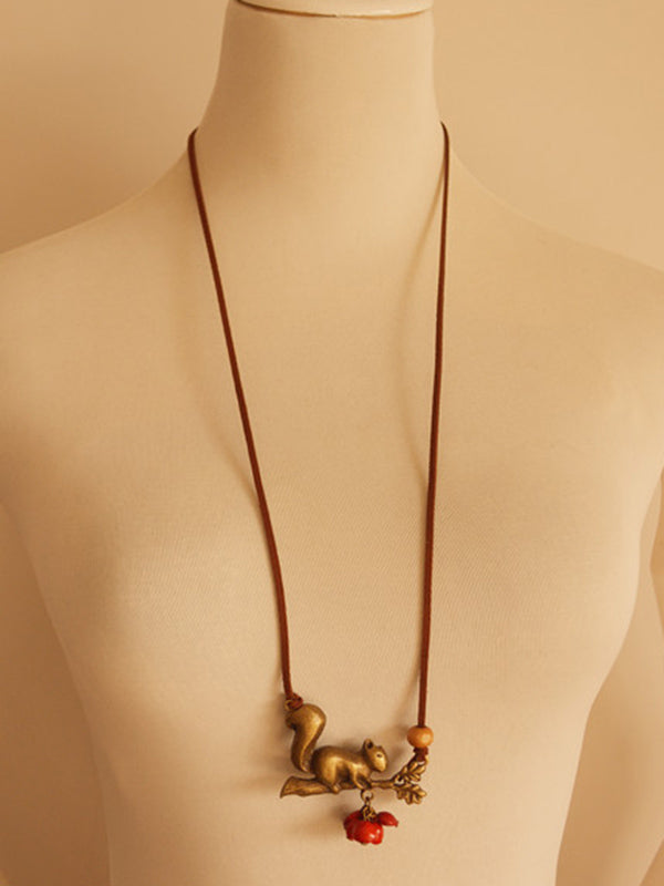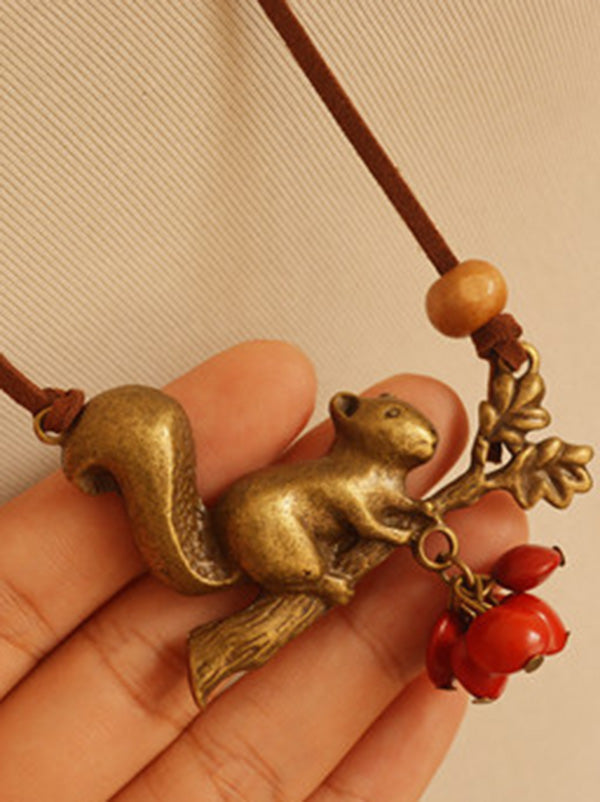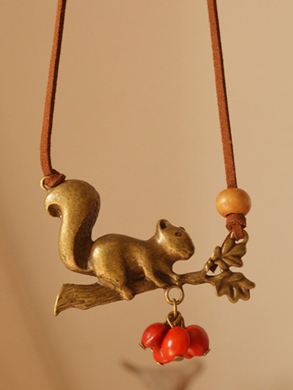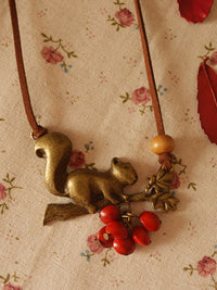 Vintage Squirrel Red Beans Necklace