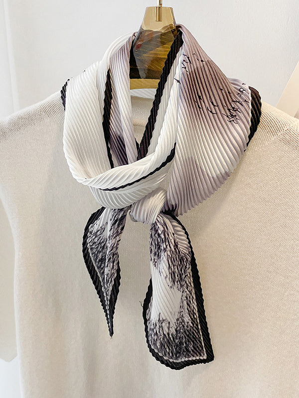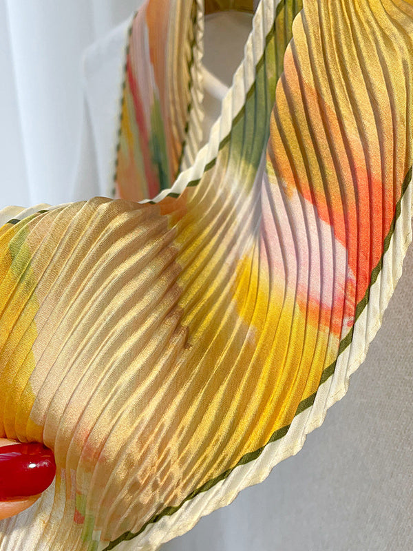 Vintage Tie-Dyed Silk Imitation Pleated Scarf