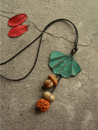 Vintage Wooden Beaded Leaf Shape Necklaces Accessories