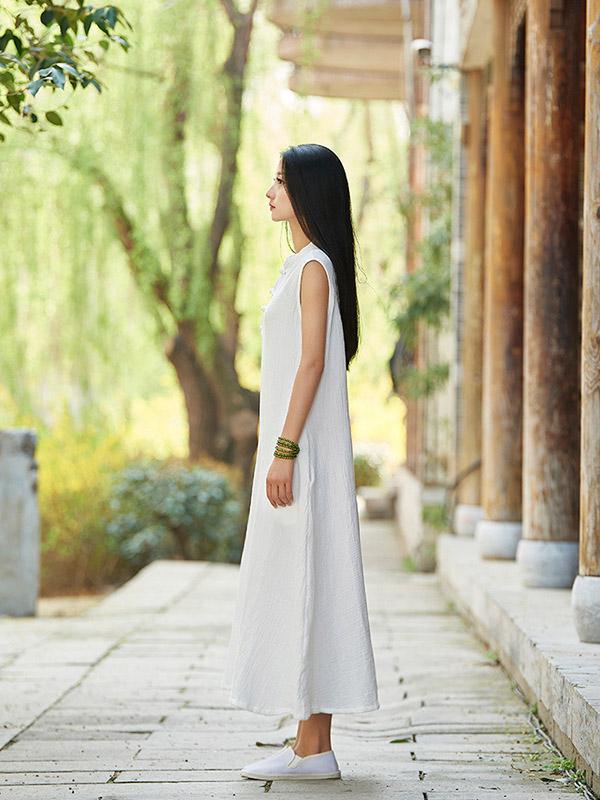 White Ramie Cotton Sleeveless Linen Dress