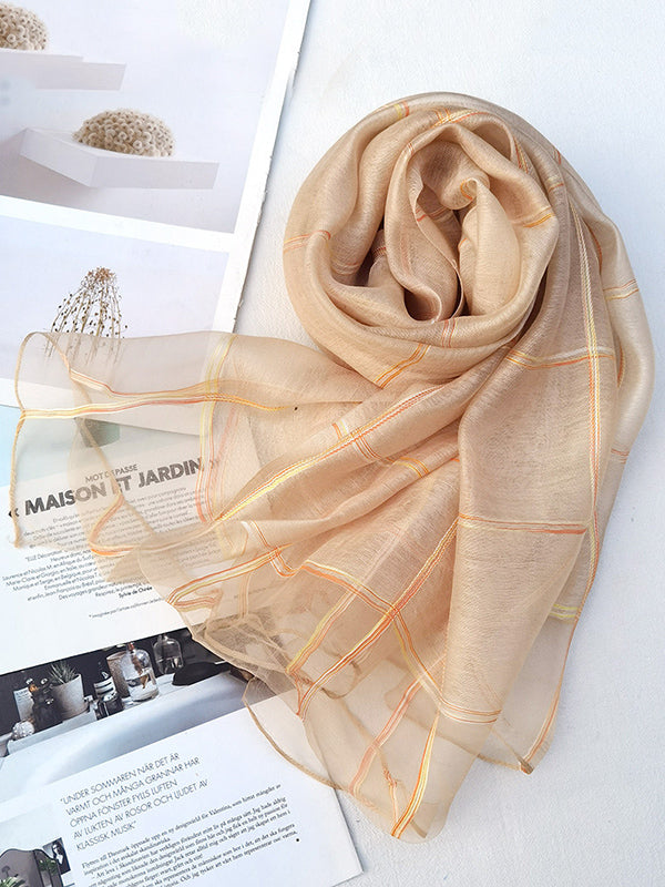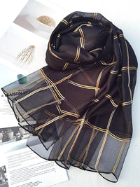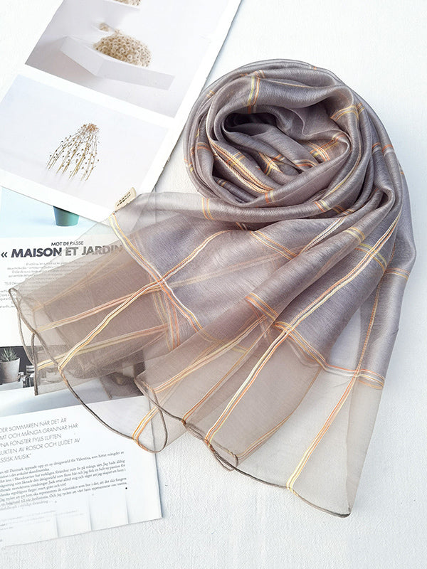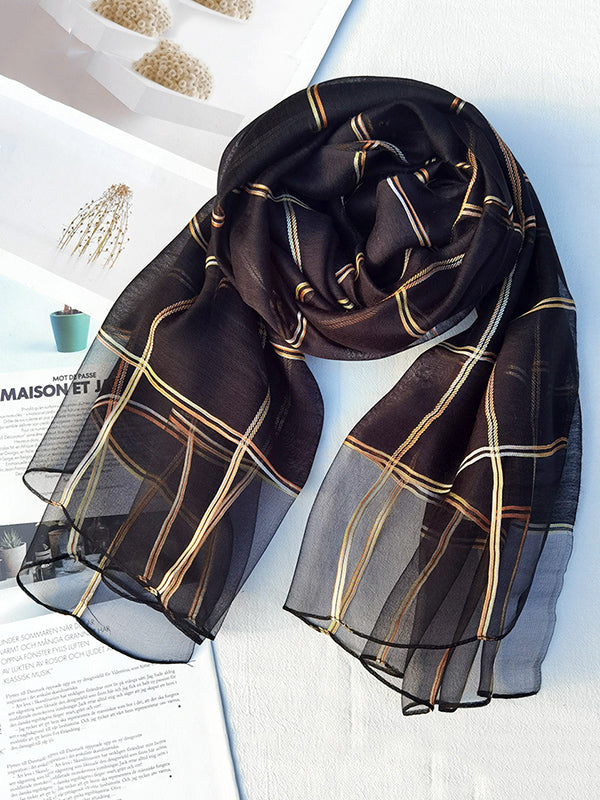 Wool Blend & Mulberry Silk Plaid Sun-Protection Shawl&Scarf