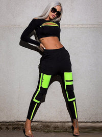 Zipper Hollowed Long Sleeves Tees&Pants Patchwork Suits
